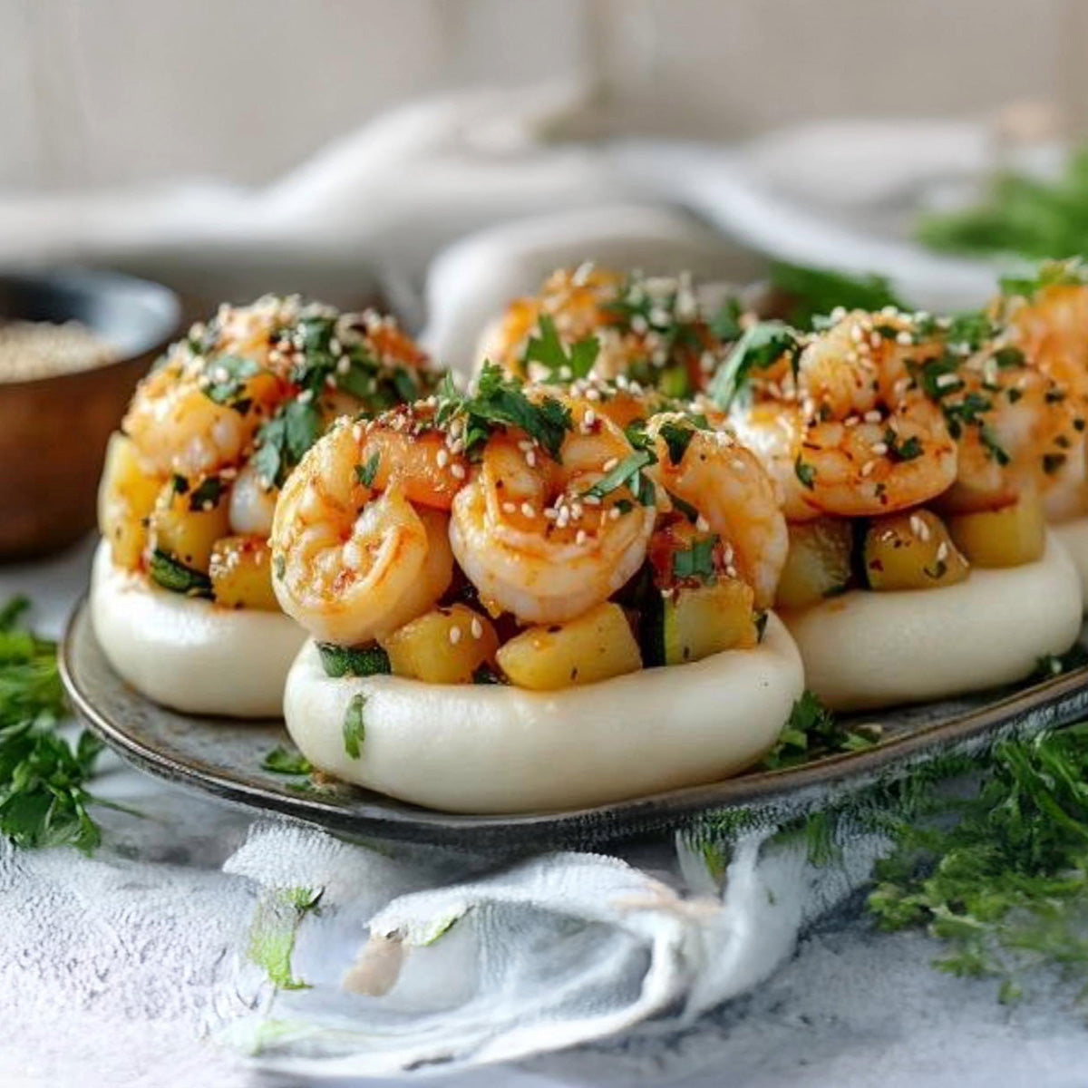 Bao buns är mjuka, ångade bröd med en lätt och luftig konsistens som gör dem perfekta för smakrika fyllningar. Ursprungligen från Taiwan har de blivit en storfavorit världen över – och med all rätt!