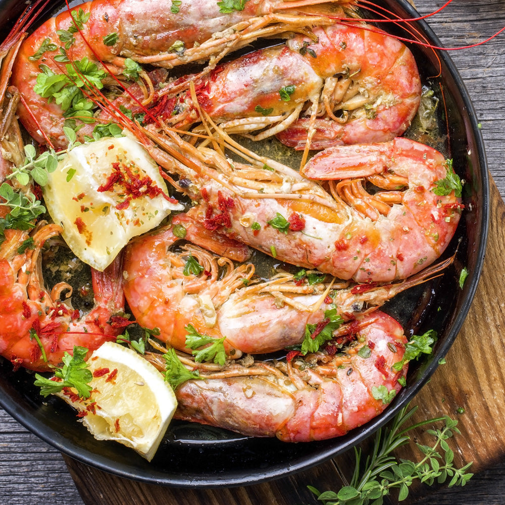 Våra tapas gambas räkor är stora, förkokta och fulla av smak. De har ett fast och saftigt kött som passar perfekt till tapas, paella eller en snabb förrätt med vitlök, citron och aioli. Styckfrysta i 2 kg-förpackningar – smidigt att tina precis så många du vill ha.