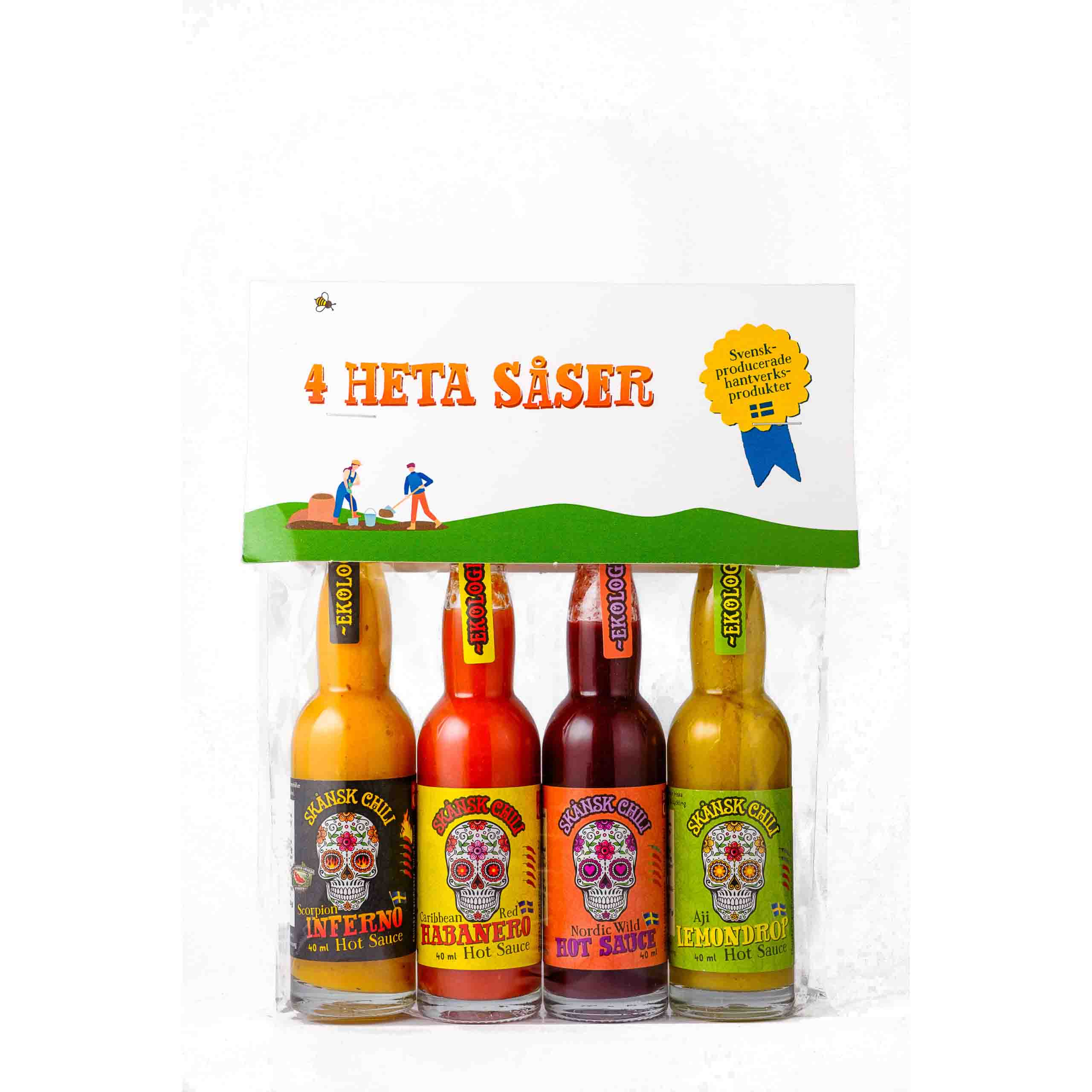 Utforska en värld av smaker med denna exklusiva presentförpackning från Skånsk Chili. En perfekt gåva för chiliälskaren eller ett smakrikt tillskott till ditt eget kök. Paketet innehåller fyra ekologiska chilisåser med unika smaker och varierande hetta, skapade för att lyfta fisk- och skaldjursrätter.