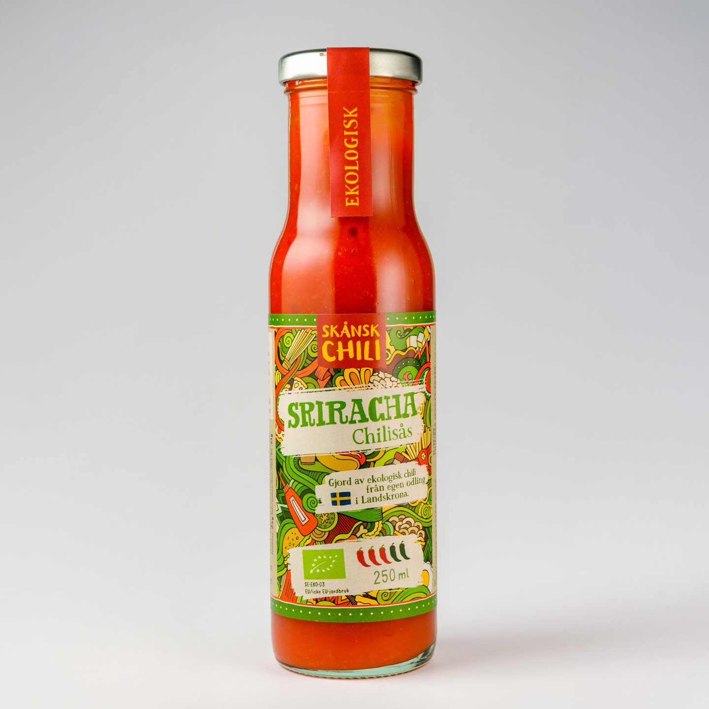 Skånsk Chilis Sriracha tillverkas av ekologisk paprika och habanero från egen odling i Skåne. Råvarorna fermenteras i minst två veckor för att utveckla en djup, rund smak utan tillsatser. Resultatet är en fyllig chilisås med mild till medelstark hetta (2/5) och tydlig vitlökston.
